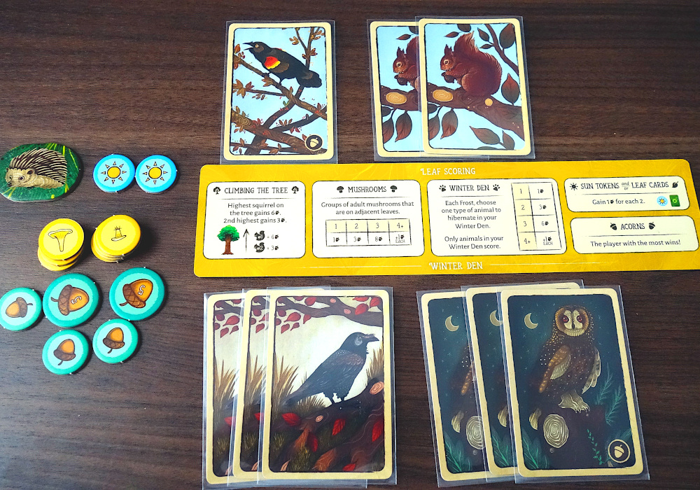 Soloversionen är tyvärr ingen höjdare. Den funkar okej, man möter en automatiserad motståndare vilket är min favoritvariant av solospel. Men det är krångligt att hålla reda på hur automan vill placera sina löv, samtidigt som man har fullt upp med att tänka på hur man själv vill placera sina löv. Det är inte heller solklart hur den ska göra i alla situationer och då säger reglerna att man får välja det som man tror är bäst för automan. Jag hade önskat att man slapp den bedömningsfrågan. Dessutom regnar det ekollon över automan som manna från himlen, så även om man justerar ner svårighetsgraden känns det allt som oftast hopplöst att vinna över den. Visst vill man ha motstånd när man spelar solo, men här finns utrymme för justering.